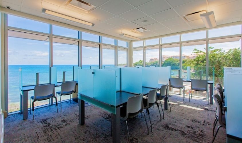 - New Beachfront Pavilion: On the hill connecting upper and lower campus, this new pavilion will have the capacity for 324 students to conduct group study, all with backdrop of True Blue Bay. Scheduled to be completed by early fall.