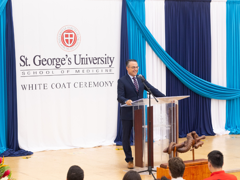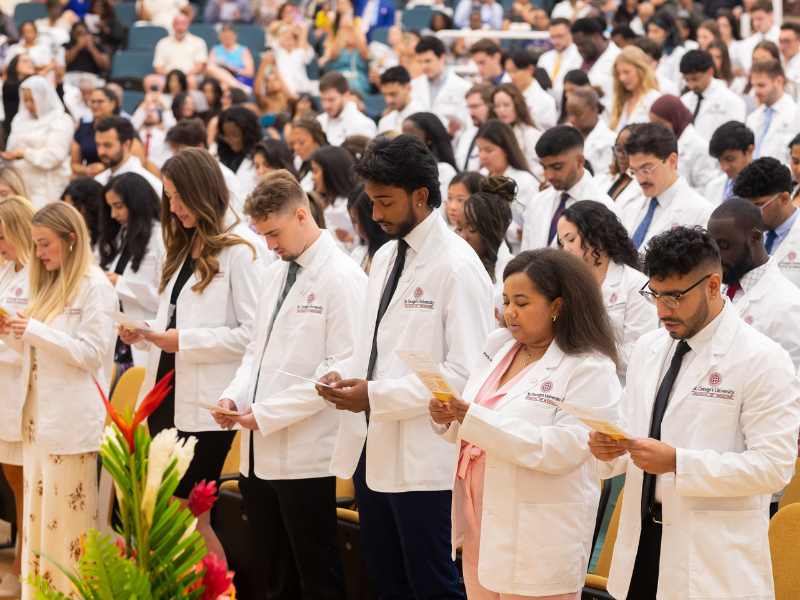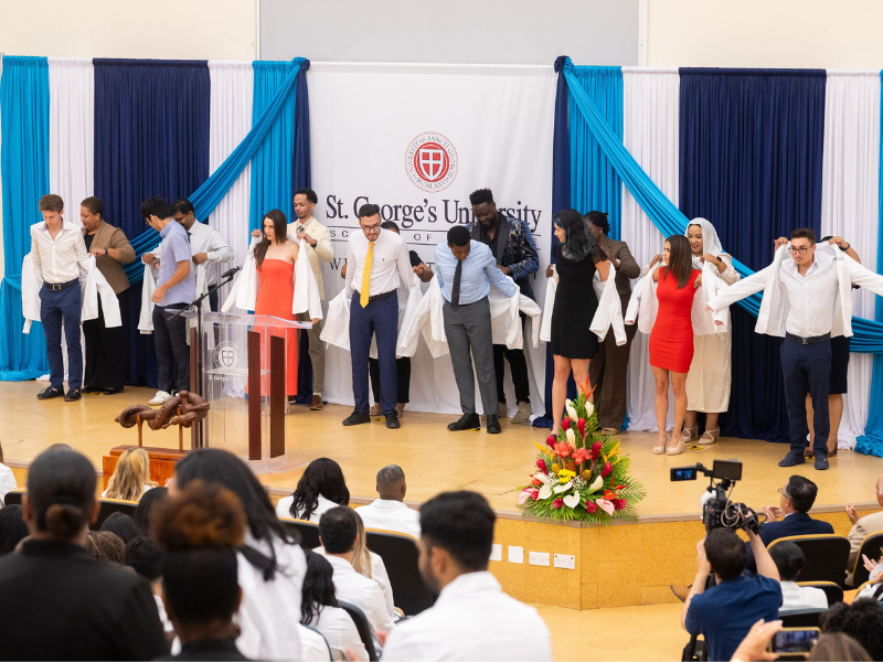 Families and mentors were center stage at the St. George’s University School of Medicine White Coat Ceremony. The ceremony, held on September 27, saw the newest class of medical students don their white coats for the first time.