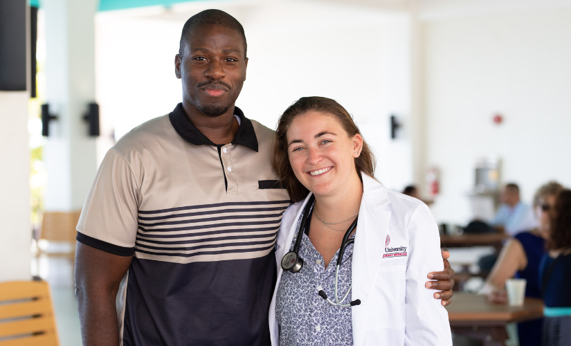 “I was so excited to be coated by my mentor, Clarence Williams, DVM ’17, because he is someone who has been in my shoes. As an SGU grad, he shared about his own successful journey to becoming a vet and what I could expect when I got here. But nothing he said could’ve prepared me for how beautiful the campus is and how supportive the faculty and staff are. I’ve found a wonderful community here, and I love it. Now that I’ve put on my white coat, I don’t ever want to take it off.”