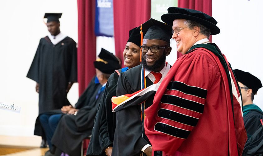 These challenges and conquests have provided inspiration for the nearly 420 graduates from 31 countries. The 2019 class included more than 230 students from the School of Arts and Sciences, and 110 from the School of Graduate Studies, with one PhD graduate in attendance. Medical doctorates were conferred on 77 new physicians from the School of Medicine. Ceremonies for the Schools of Medicine and Veterinary Medicine will take place at New York City’s Lincoln Center in June.
