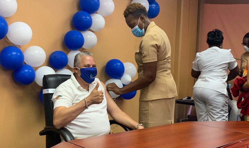 Drs. Macpherson and Noël were amongst the first to receive the COVID-19 vaccine developed by Oxford/AstraZeneca SARS-CoV-2 vaccine on February 12. They joined the Grenada Prime Minister, Dr. the Right Hon. Keith Mitchell; Minister of Health the Hon. Nickolas Steele; and a number of cabinet members, senior administrators from the Ministry of Health, and some frontline workers.