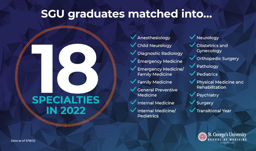 For a full list of SGU’s 2022 residency matches, visit our website here.