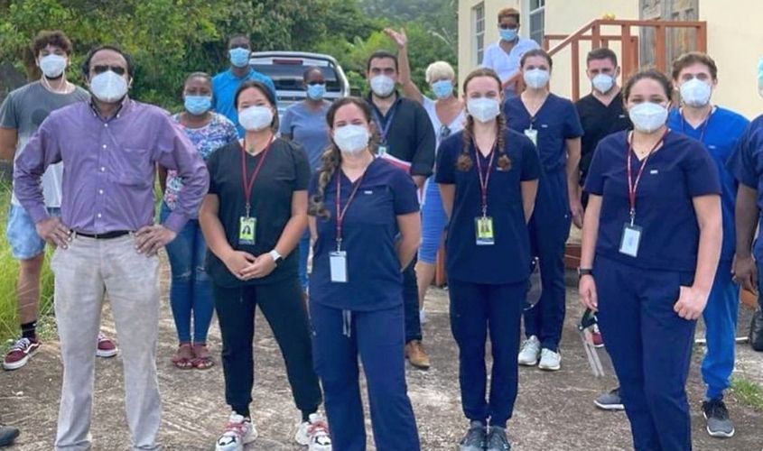 The increase in COVID-19 cases in Grenada has mobilized St. George’s University School of Medicine students to use their passion for medicine and acquired skills toward helping their beloved host country and its communities. Over the past several weeks, many aspiring physicians heeded the call to help those in need by volunteering at mobile testing and vaccination clinics organized by Grenada’s Ministry of Health (MOH) across the island.