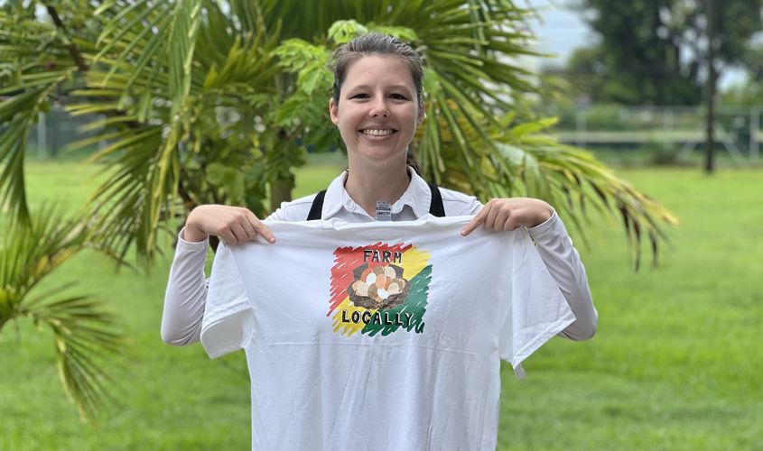 One of the day’s highlights was the announcement of the winner of the Committee’s logo competition, Marissa Peck. Ms. Peck, along with her fellow SVM students, were invited to design graphics for t-shirts to be distributed to the farmers supporting the theme, “Poultry Production in Grenada.” Ms. Peck’s winning logo was placed on name badges and flyers, and she received a gift certificate as well as an invitation to attend the workshop.